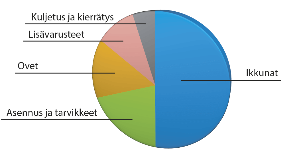 Ikkunaremontin kustannukset koostuvat ikkunoista, asennuksesta, ovista, lisävarusteista sekä ikkunoiden rahdista ja vanhojen ikkunoiden kierrätyksestä.